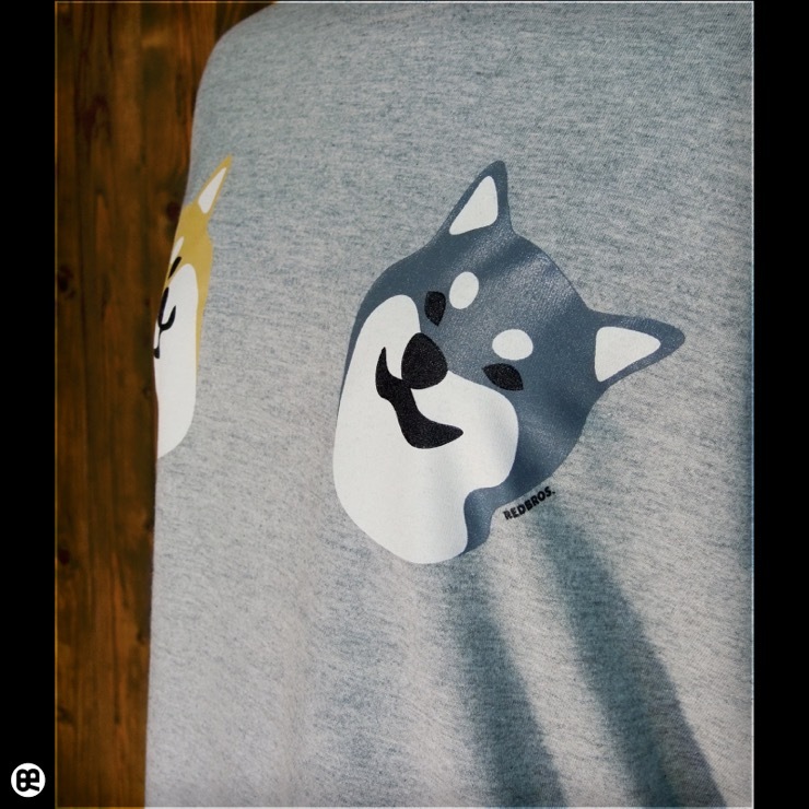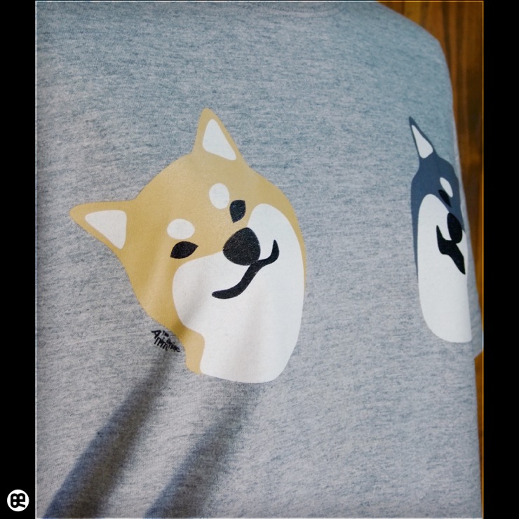左右の胸のモチーフは柴犬